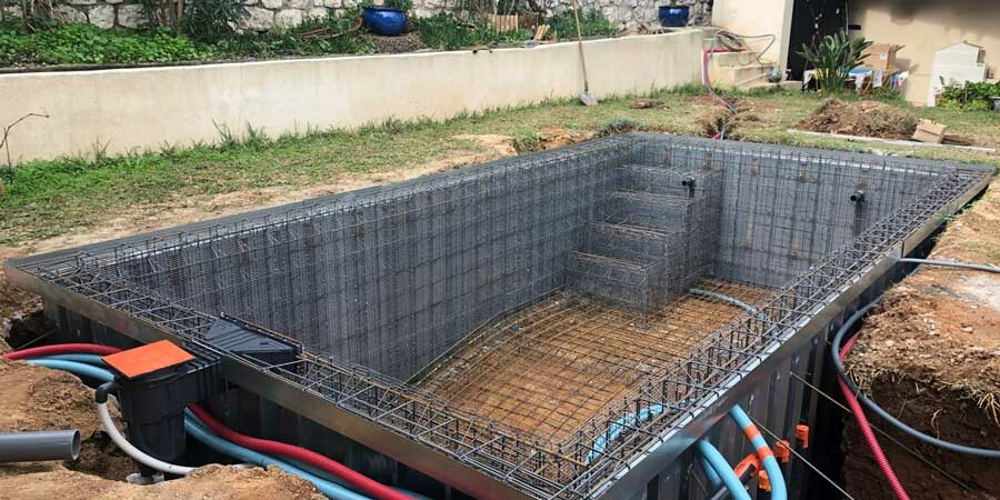 The Leader Pool process provides a one-piece reinforced concrete structure; that is to say that the bottom, the walls and possibly the beaches are poured in a single operation with concrete from approved plants. The design of the structure and the follow-up of the works are carried out by professionals approved by Leader Pool, chosen for their know-how and their mastery of this unique and patented process.